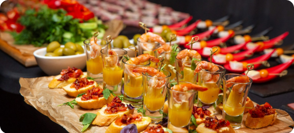 На вечеринке будет представлен фуршет с различными закусками и напитками. Отдельные напитки не входящие в фуршет приобретаются через бар.